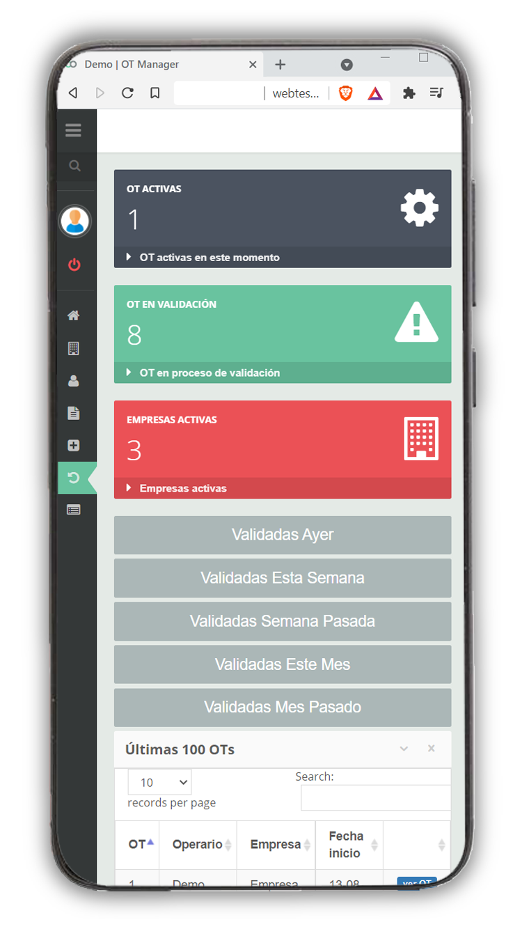 Sólo necesitas un navegador web! OT Manager funciona desde internet y es accesible desde cualquier dispositivo ya sea un smartphone, tableta, pc con MAC, Windows o Linux.