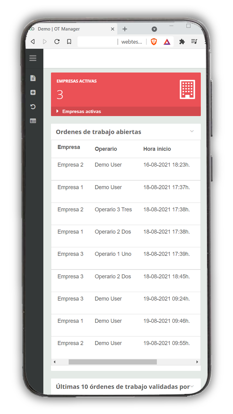 OT Manager es una aplicación web dedicada a la gestión de tareas y operarios de campo de tu empresa. Compatible en Iphone, Android, tabletas y ordenadores. Y sin instalación!